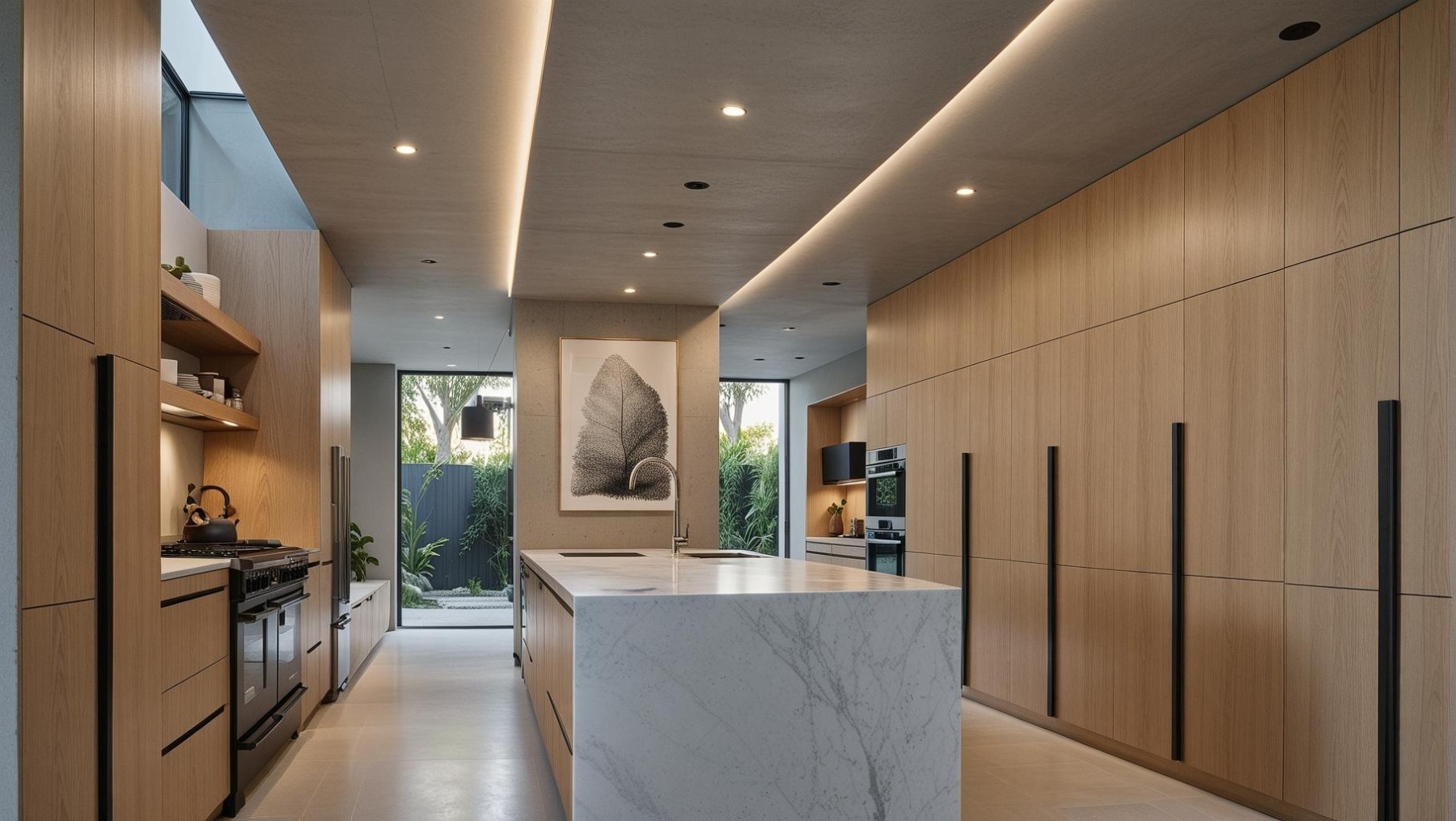 The upper floors benefit from a new ensuite bedroom and dedicated study space, providing flexibility for family life. At ground level, the extension creates a generous open-plan kitchen positioned at the heart of the house. Carefully placed glazing draws natural light deep into the plan, while the kitchen connects seamlessly to a semi-separate living space. Large areas of glazing open directly onto the private garden, strengthening the relationship between inside and out.