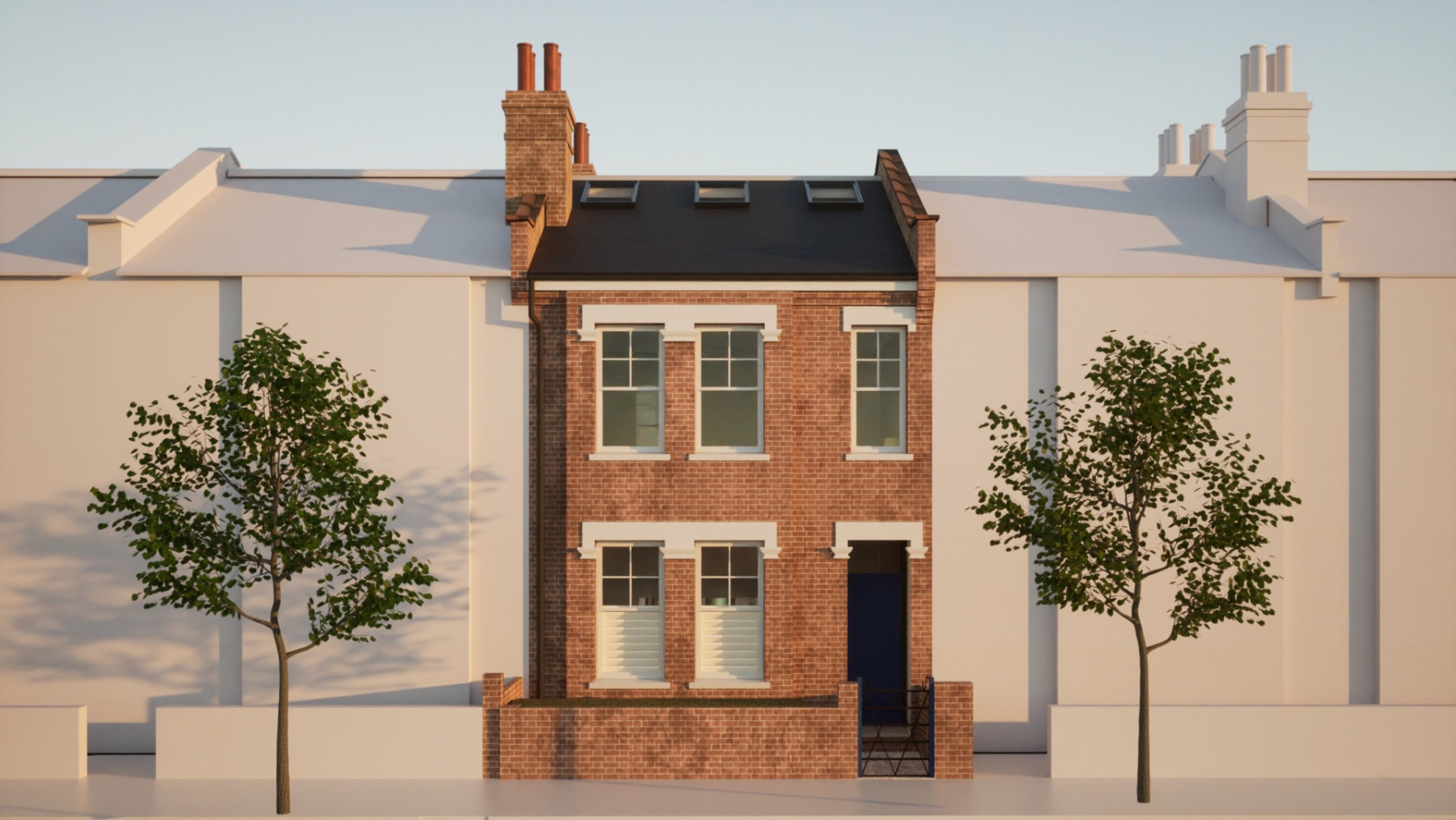 Our proposal includes an extensive renovation and carefully considered extension, designed to maximise the available space while enhancing the character of the house. A sympathetic approach to the existing fabric allows the original architectural language to be restored, with improvements to the front façade ensuring it sits comfortably within the street.