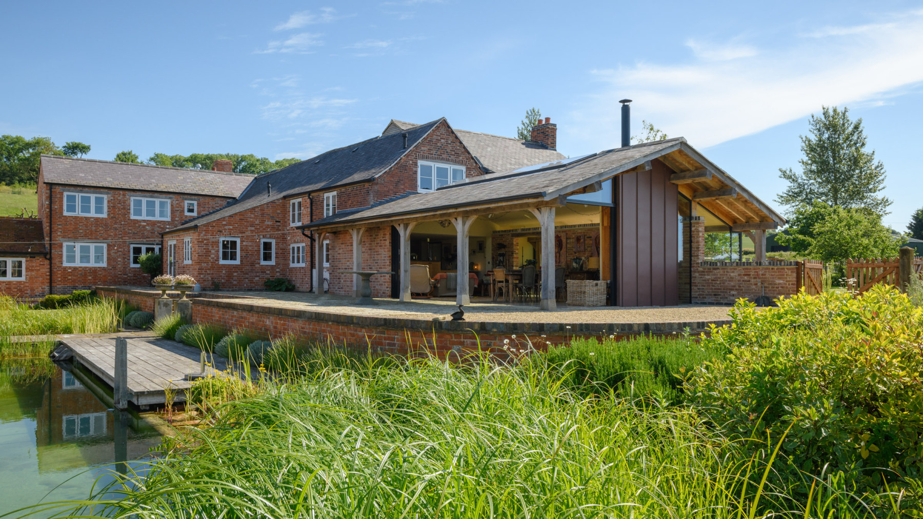 WGA designed a bespoke garden room extension that connects the day living with the near and far landscapes. On one side there is an English cottage garden, the other a swim pond and beyond the gable a ha-ha, fields and a long country landscape view.